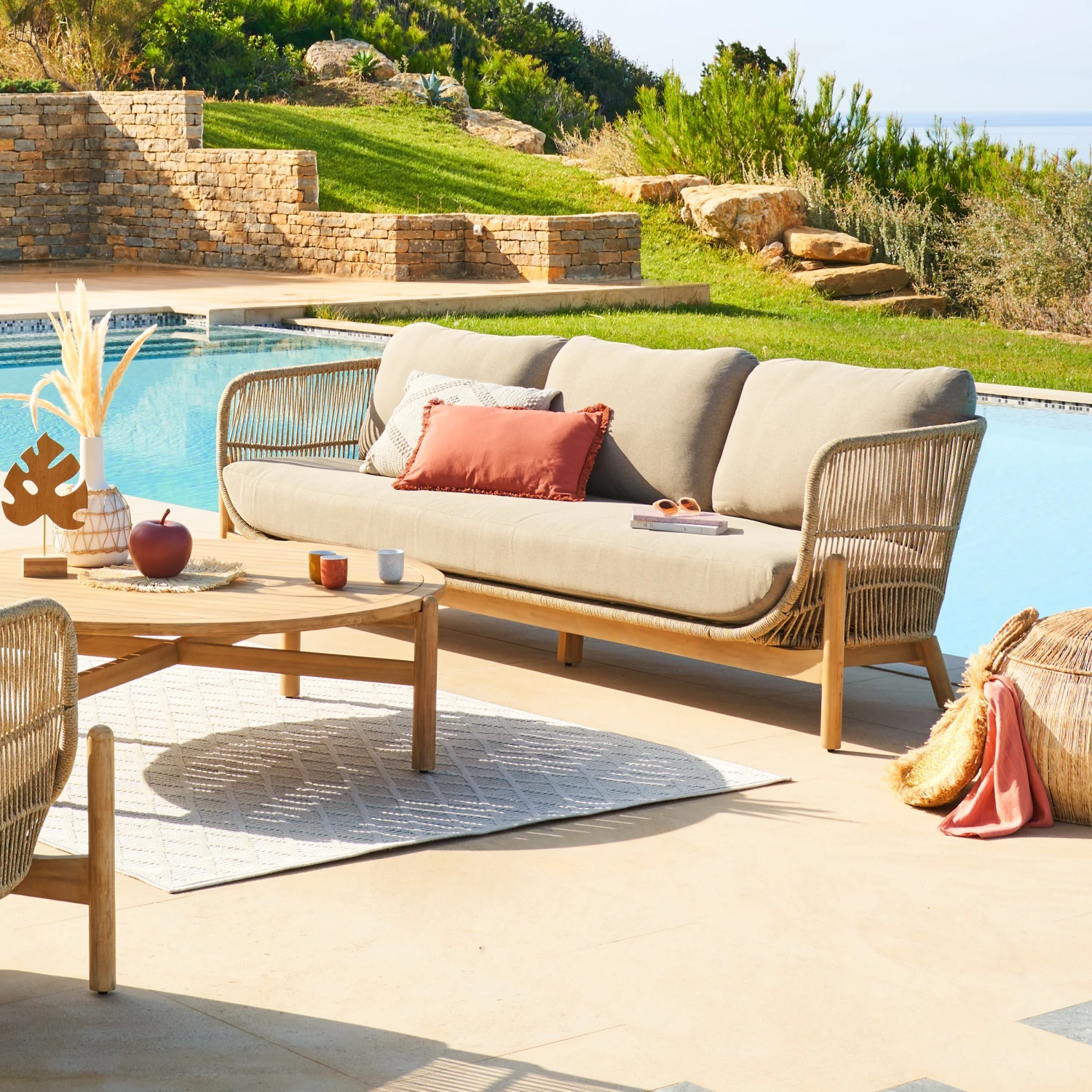 Sa structure en bois d’acacia FSC et ses coussins d’assise et de dossier en font un canapé robuste et confortable dans lequel vous allez prendre plaisir à vous relaxer.