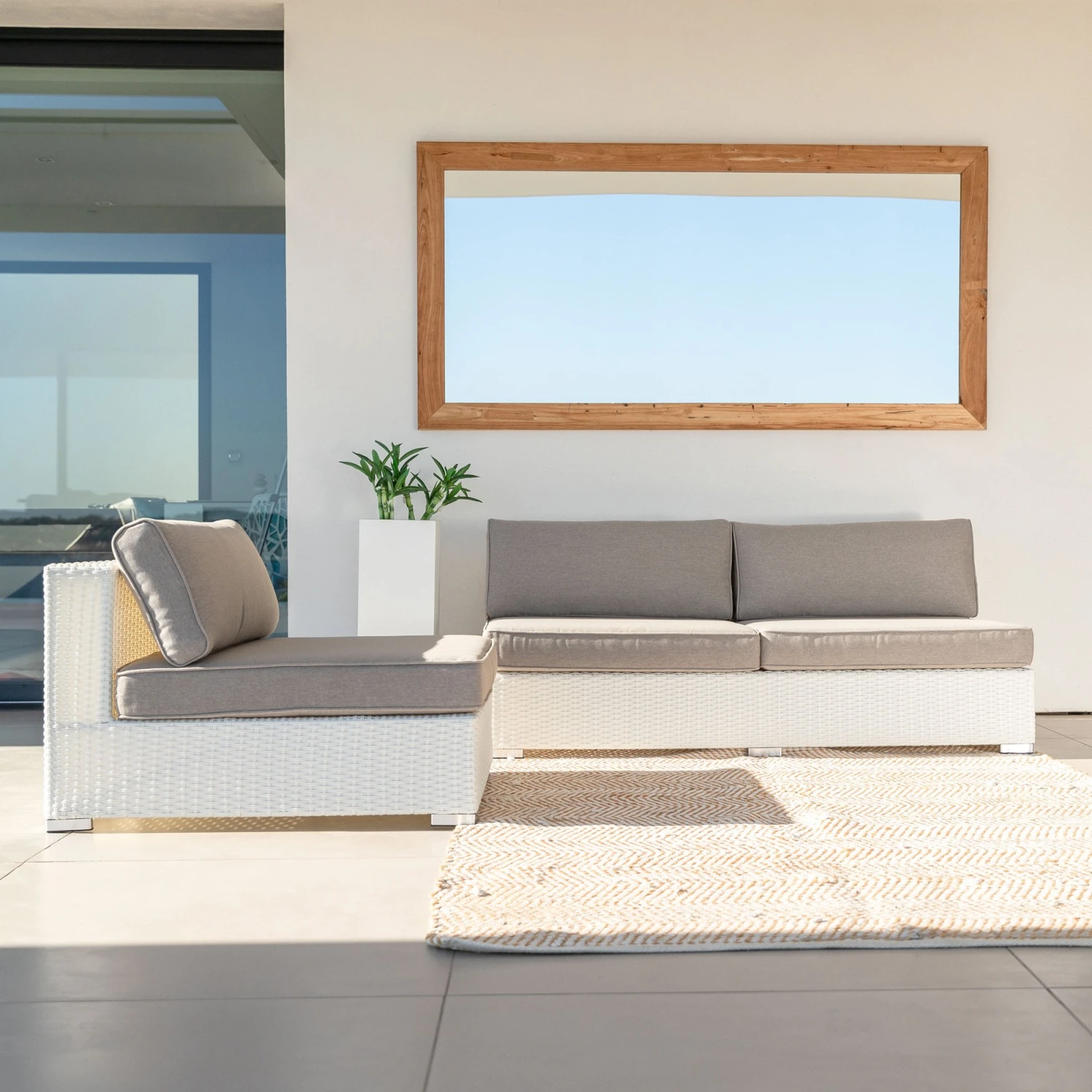 D’inspiration moderne, la gamme de jardin Palma est propice à la détente et à la relaxation. Idéale pour recevoir, vous allez adorer vous installer avec vos amis pour profiter de l’été. Avec son design élancé, elle est composée de plusieurs éléments sans accoudoirs, se démarquant ainsi des autres ensembles de jardin.