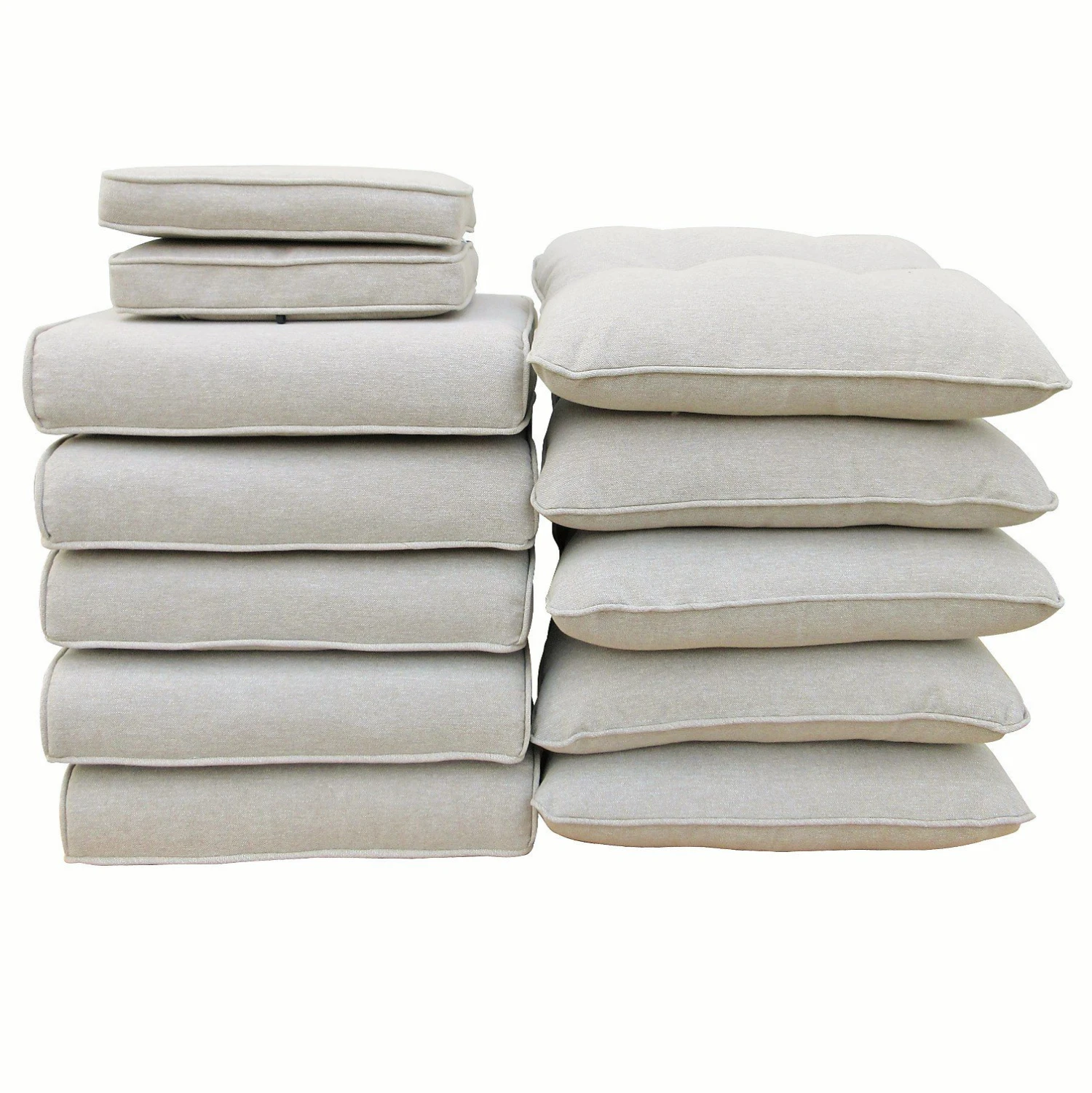 Il comprend : 5 coussins d’assise, 2 coussins pour tabourets et 5 coussins de dossier.