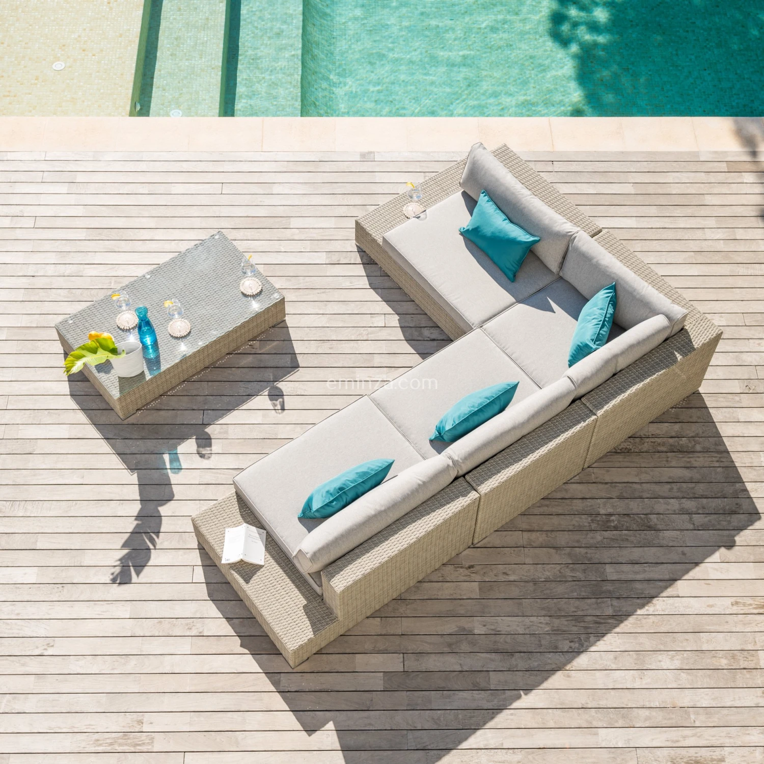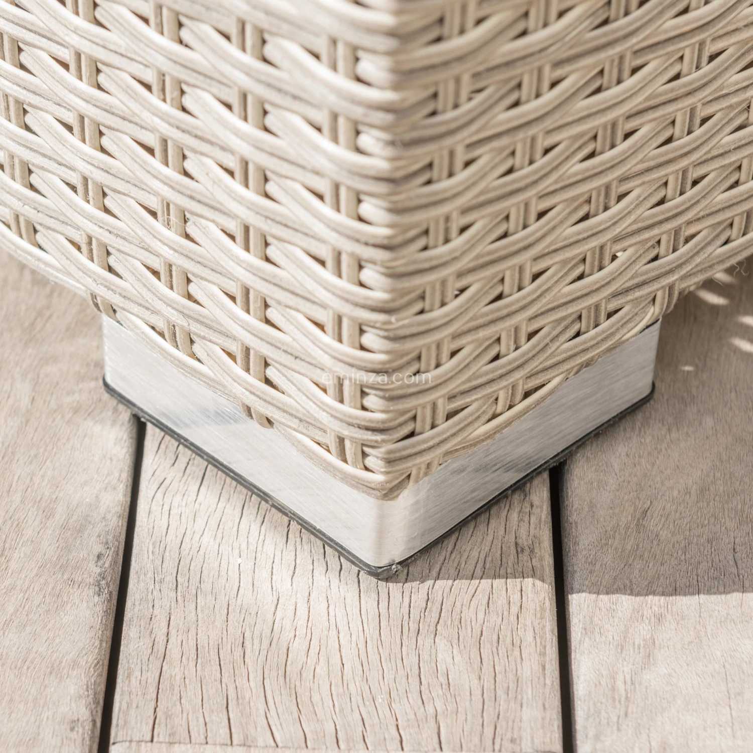 D’inspiration moderne, la gamme de jardin Palma est propice à la détente et à la relaxation. Idéale pour recevoir, vous allez adorer vous installer avec vos amis pour profiter de l’été. Avec son design élancé, elle est composée de plusieurs éléments sans accoudoirs, se démarquant ainsi des autres ensembles de jardin.