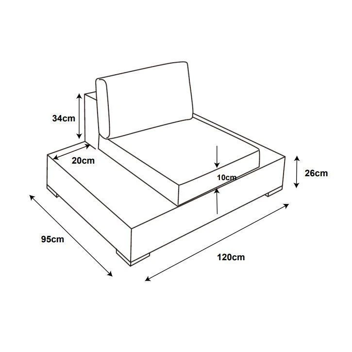 – Coussin d’assise : longueur 80 x largeur 80 x hauteur 10 cm.