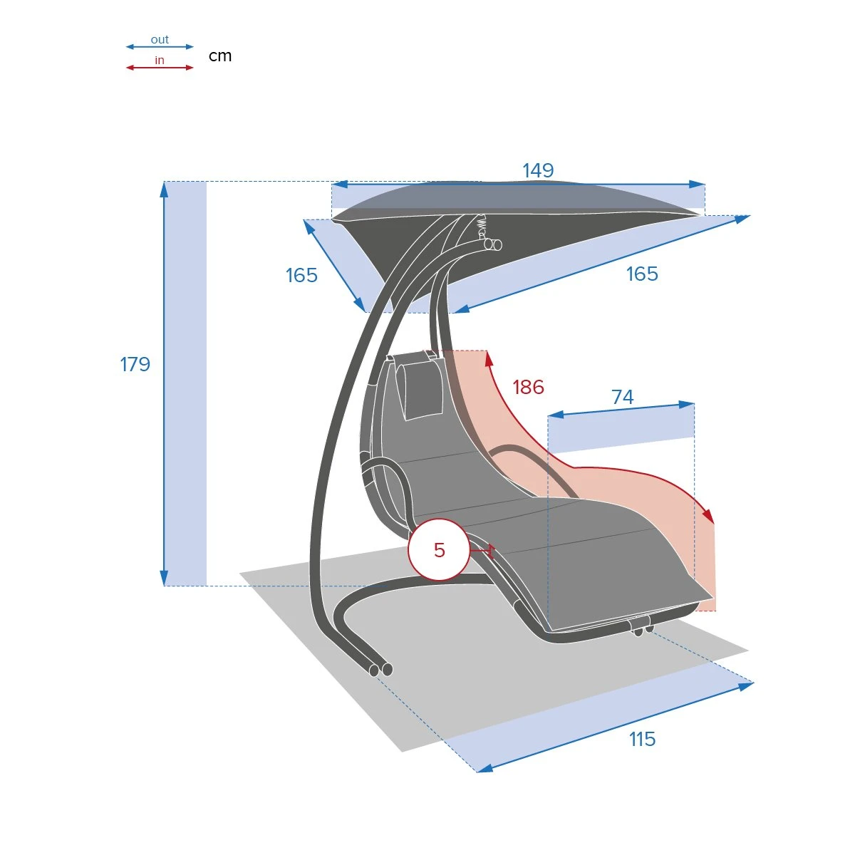 Matière : métal traité epoxy, assise en texaline et toit et coussin en polyester.
