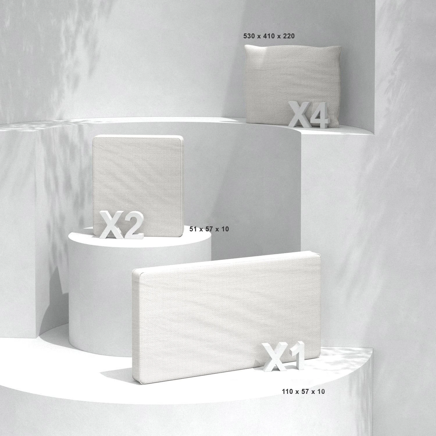 – Assise fauteuil : longueur 51 x largeur 57 x hauteur 10 cm.