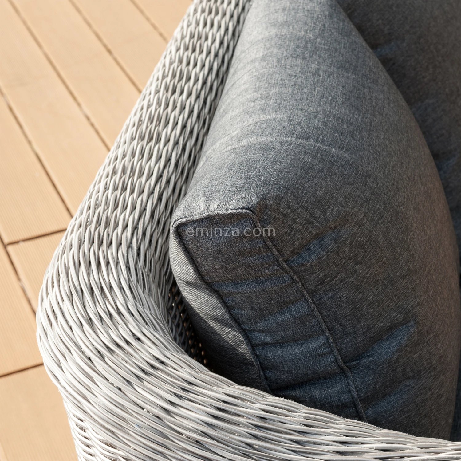– Coussins : déhoussables et déperlants en polyester filé doux (220 g/m²). Densité coussin d’assise : 22 kg/m³.