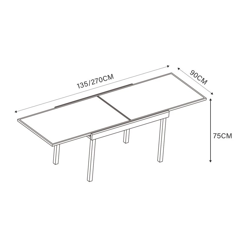 Elégante et moderne la table de jardin extensible Murano avec son plateau en verre vous fera un très joli coin repas pour profiter de vos repas d’été.