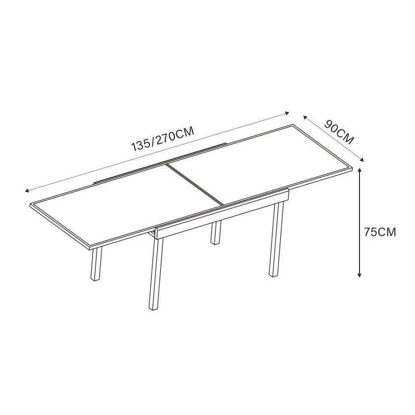 – Longueur : 135 cm (270 cm avec rallonge).