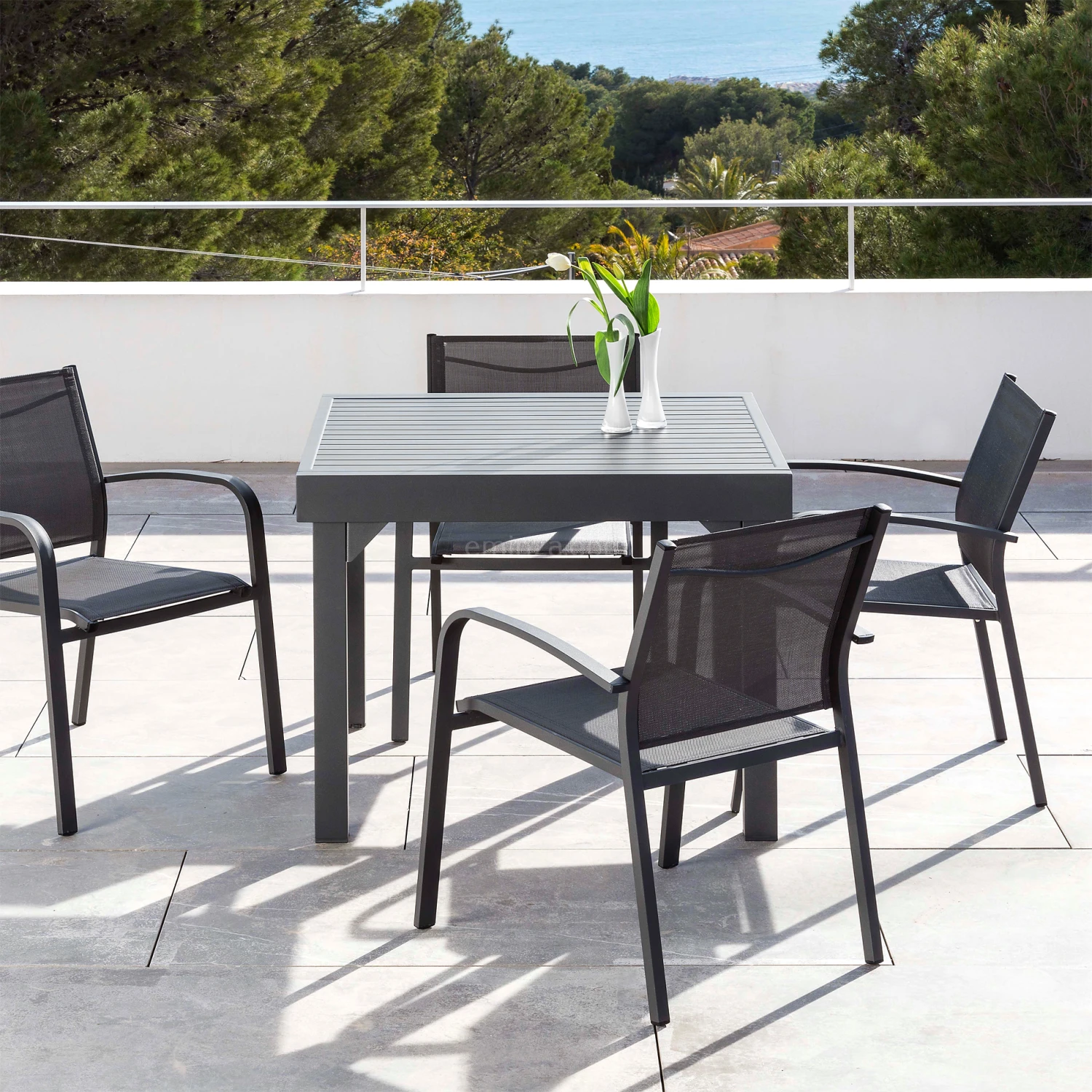 Vous recherchez une table de qualité à la fois légère et résistante pour vos repas estivaux ? Extensible ou fixe, rectangulaire, ronde ou carrée, la table Murano est sans aucun doute la table qu’il vous faut. Toute une gamme fonctionnelle et pratique pour passer d’agréables moments en famille ou entre amis. Ses finitions impeccables en aluminium donneront un style contemporain à votre extérieur.