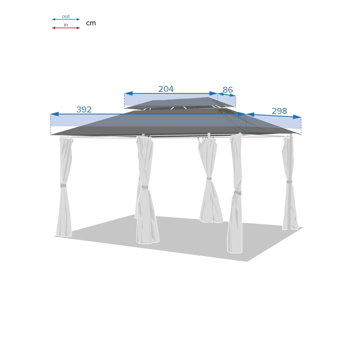– Toile principale: longueur 3,9 x largeur 2,9 m.